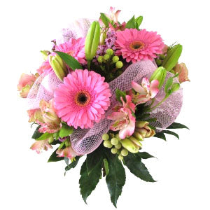Hand tied bunch including gerberas and lilies